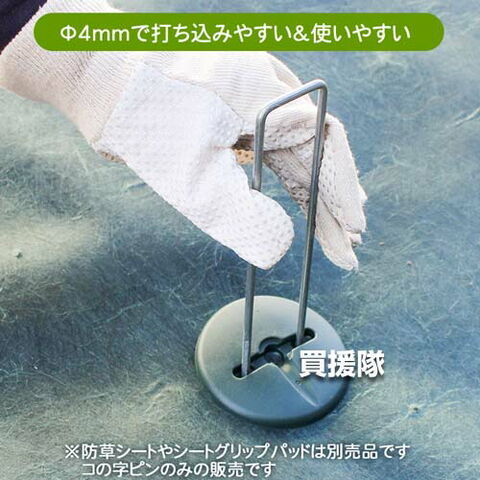 ●太さ4mmの極太ピンで、分厚い高耐久の防草シートにもしっかり打ち込めます。