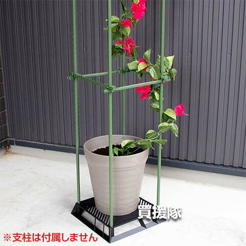 鉢に支柱を差し込むと鉢ごと倒れやすくなってしまう問題を、ブラックベースに支柱を立てる事で 鉢の転倒を防ぎ、支柱自体も土に直接挿すよりも、安定して倒れなくなります。