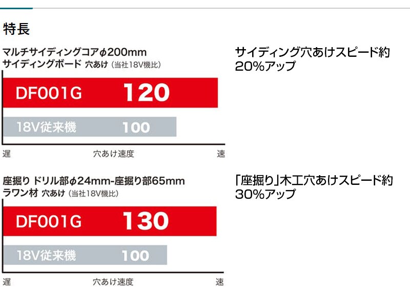 1充電あたりの作業量(目安) ※1 約800本 木工キリφ21mm ラワン(30mm厚)