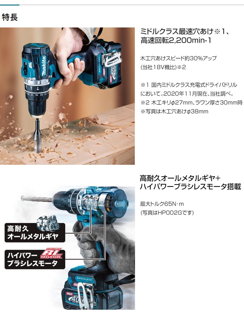 ※1 国内ミドルクラス充電式ドライバドリルにおいて。2020年11月現在、当社調べ。