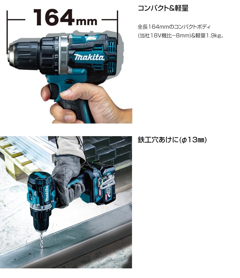 【コンパクト&軽量】全長164mmのコンパクトボディ(当社18V機比-8mm)&軽量1.9kg。