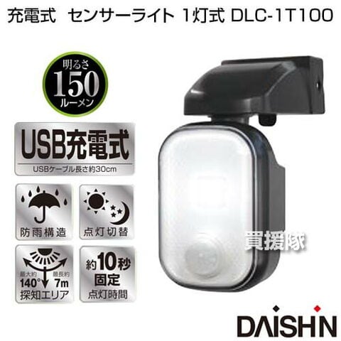 大進 充電式 センサーライト 1灯式 DLC-1T100 【玄関灯 常夜灯 門灯 外灯 非常灯 自動点灯 人感センサーライト 人感 防犯対策 防犯グッズ 防犯ライト 防雨 節電 屋内 屋外 庭 玄関 車庫 物置】【おしゃれ おすすめ】