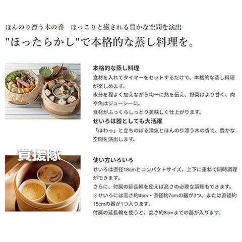 付属品 せいろセット(せいろ2個、延長輪1個、ふた1個)、レシピブック 、取扱説明書