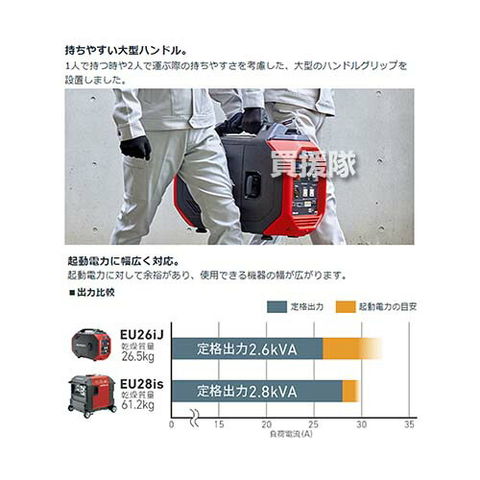 ホンダ インバーター発電機 2.6kVA EU26iJ JN 【HONDA インバータ 発電機 業務用 正弦波 ハンディタイプ 防災 地震 非常用 現場 土木 建築 土建 工事現場 キャンプ アウトドア エンジン 発動 ポータブル 交流】【おしゃれ おすすめ】