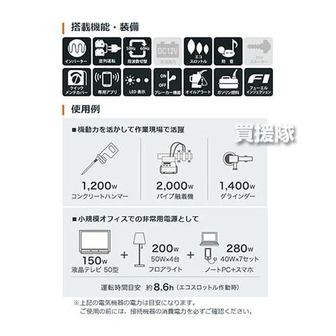 【インバータ 発電機 業務用 正弦波 ハンディタイプ 防災 地震 非常用 現場 土木 建築 土建 工事現場 キャンプ アウトドア エンジン 発動 ポータブル 交流 本田技研工業 HONDA 】