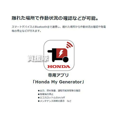 スマートデバイスとBluetooth(R)で連携し、離れた場所から作動状況の確認や発電機の停止などが行えます。