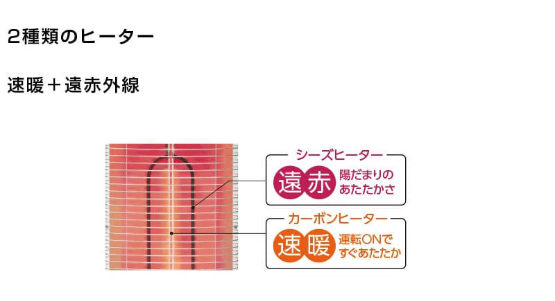 ●芯から暖かいシーズヒーターと運転ONですぐ暖かいカーボンヒーターをダブルで使用した遠赤外線ヒーターです。