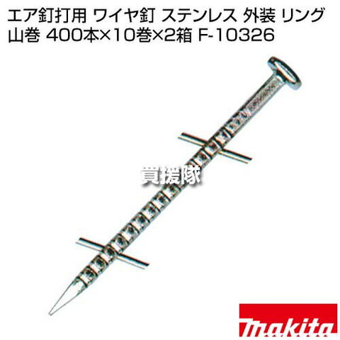 マキタ エア釘打用 ワイヤ釘 ステンレス 外装 リング 山巻 400本×10巻×2箱 F-10326 【適用 AN504/A AN514 AN517 AN611 AN514H AN534H AN560 工具 用品 makita 純正品 パーツ 部品 消耗品 交換 変え 替え オプション品】