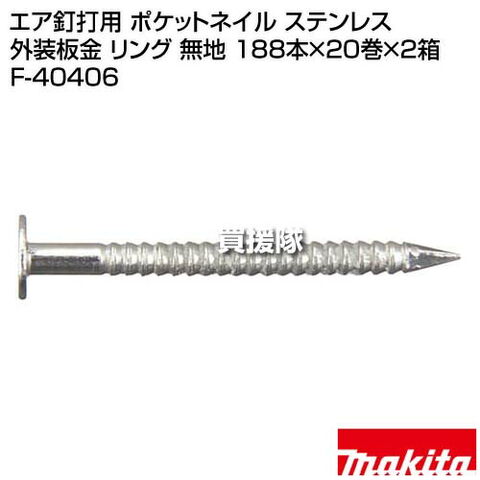 マキタ エア釘打用 ポケットネイル ステンレス 外装板金 リング 無地 188本×20巻×2箱 F-40406 【型式PKR1825SM 適用モデル AN301P AN302P AN303P 用 エアー エア 工具 用品 makita 純正品 パーツ 部品 消耗品 交換】【おしゃれ おすすめ】