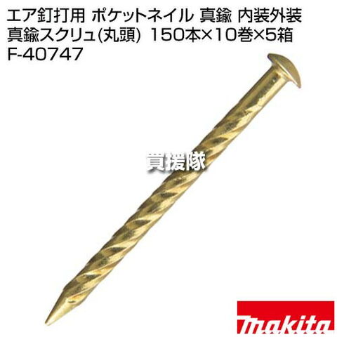 マキタ エア釘打用 ポケットネイル 真鍮 内装外装 真鍮スクリュ(丸頭) 150本×10巻×5箱 F-40747 【適用 KDN30S 工具 用品 makita 純正品 パーツ 部品 消耗品 交換 変え 替え オプション品】【おしゃれ おすすめ】
