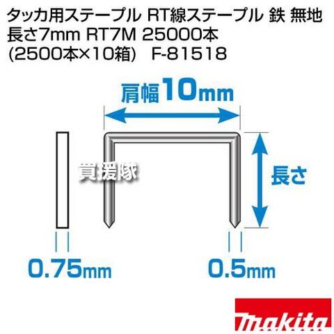 マキタ タッカ用ステープル RT線ステープル 鉄 無地 長さ7mm RT7M 25000本(2500本×10箱) F-81518 【タッカ エア工具 適用 ST111D ST112D ST113D 工具 用品 makita 純正品 パーツ 部品 消耗品 交換 変え 替え オプション品】