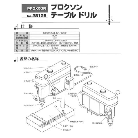 【DIY 工具 ツール プロクソン テーブルドリル No.28128 電動工具 ホビーツール プロクソン製品 4006274281288】