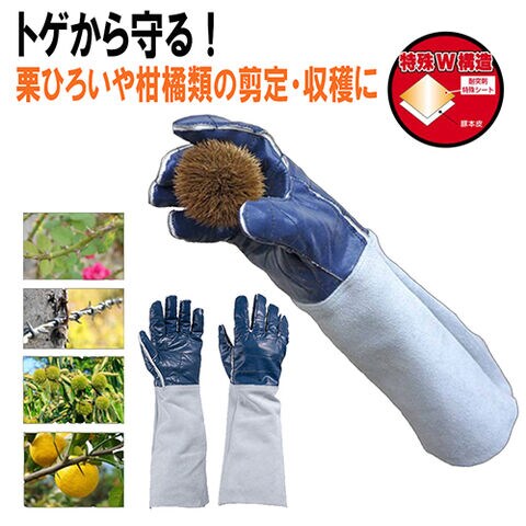 ・腕まで保護するので安心・安全、柑橘類の樹木の収穫・剪定や栗拾いなどのドゲ対策に最適です。