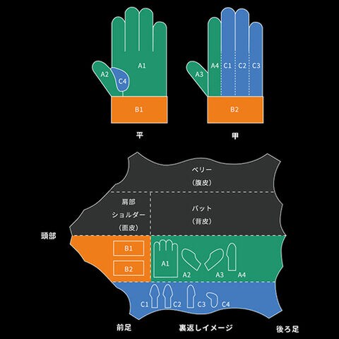 手袋本体:豚皮・ニトリルシート。/袖口:牛床皮。