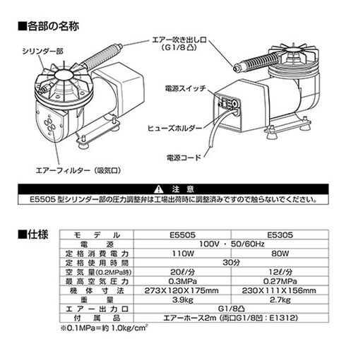 品名 プロクソン ダイヤフラムコンプレッサー E5505
