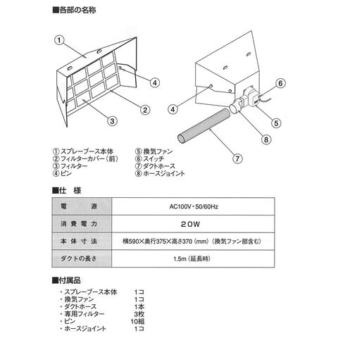・別売りでスプレーブース交換用フィルターを用意しておりますが、市販のキッチン用換気扇フィルターを適当なサイズに切って使用していただくこともできます。