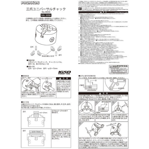品名 プロクソン 三爪ユニバーサルチャック No.24034