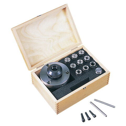セット内容:コレットチャック(径2・3・4・5・6・8・10・12・14mm)・コレット(未加工のもの)。