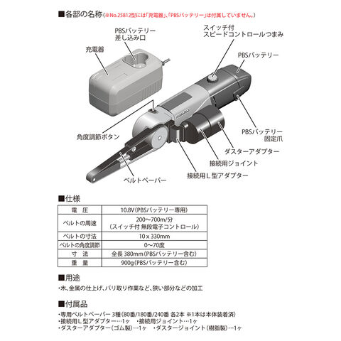 ・電源が取れない場所、野外作業でも使用できる、充電器式ベルトサンダーです。