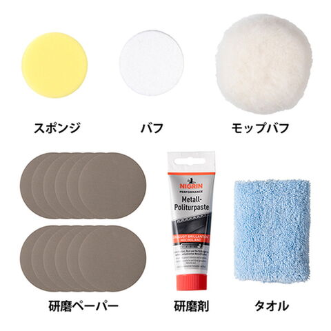 付属品:モップバフ・バフ・スポンジ・研磨剤。