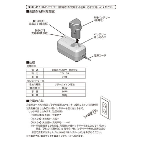 ・プロクソン受電式電動工具10.8Vシリーズ専用電池の充電器。
