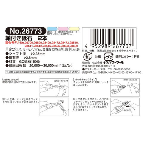 品名 プロクソン 軸付き砥石 2本 No.26272