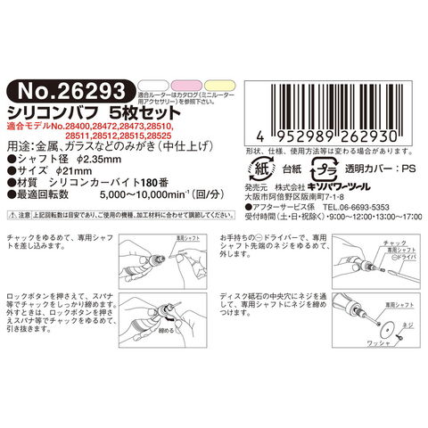 プロクソン シリコンバフ5枚 シャフト付 No.26293 【FJtools プロクソン シリコンバフ5枚 シャフト付 No.26293 電動工具 ホビーツール プロクソン製品 4952989262930 】【おしゃれ おすすめ】