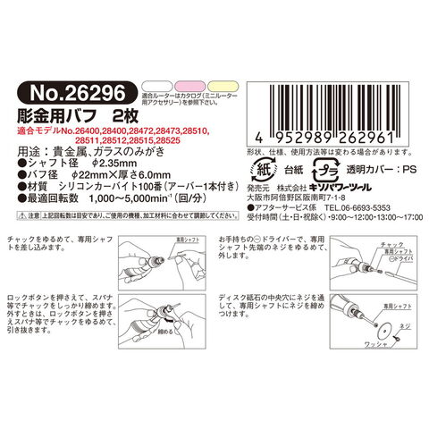 品名 プロクソン 彫金バフ 2枚(シャフト付) No.26296