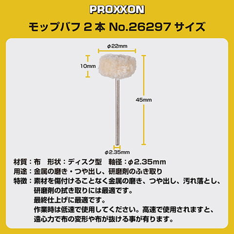 プロクソン モップバフ 2本 No.26297 【FJtools プロクソン モップバフ 2本 No.26297 電動工具 ホビーツール プロクソン製品 4952989262978 】【おしゃれ おすすめ】