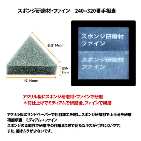 ・押し加減で研磨仕上がりが変わります(強く押す240番相当、弱く押す320番相当)。
