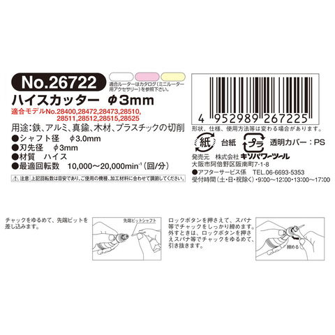 プロクソン ハイスカッター 1本 No.26722 【FJtools プロクソン ハイスカッター 1本 No.26722 電動工具 ホビーツール プロクソン製品 4952989267225 】【おしゃれ おすすめ】