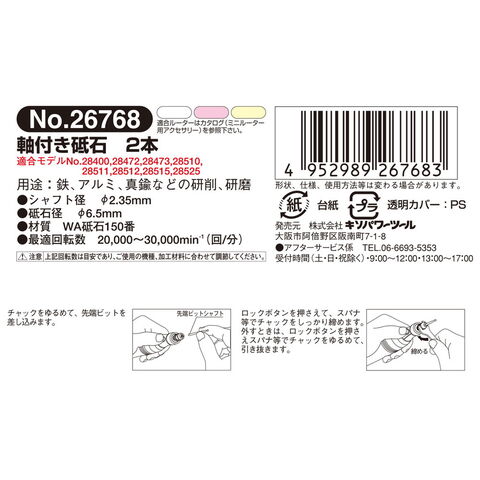 品名 プロクソン 軸付き砥石 2本 No.26768