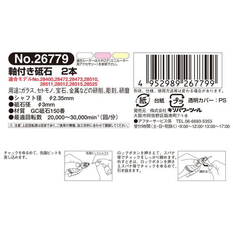 品名 プロクソン 軸付き砥石 2本 No.26779