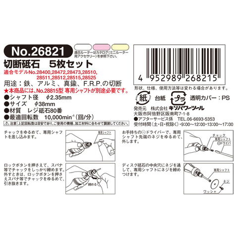 ●交換用切断砥石なので専用シャフトは付属していません。