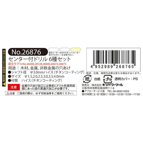 【DIY 工具 ツール プロクソン センター付ドリル6種セット No.26876 電動工具 ホビーツール プロクソン製品 4952989268765】