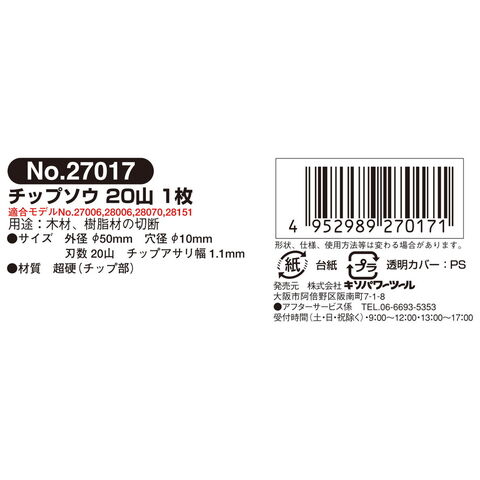 品名 プロクソン チップソウ 20山φ50mm No.27017