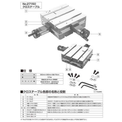 ・フライスマシンNo.27000・16000用のクロステーブルです。