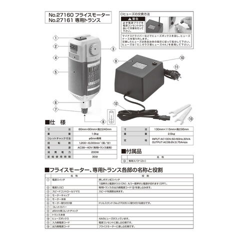・フライスモーターNo.27160・20160用の電源トランスです。