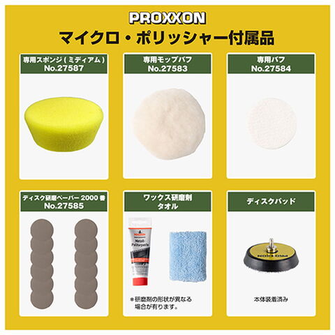 付属品:専用スポンジ・モップバフ・バフ・ディスク研磨ペーパー・研磨材。