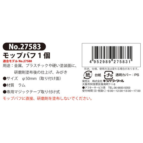 プロクソン 専用モップバフ No.27583 【FJtools プロクソン 専用モップバフ No.27583 電動工具 ホビーツール プロクソン製品 4952989275831 】【おしゃれ おすすめ】