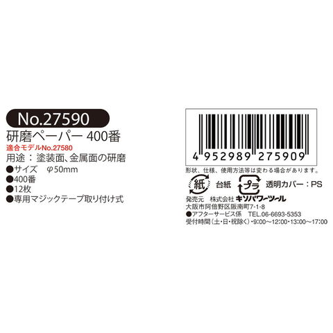 品名  プロクソン ディスク研磨ペーパー400番 No.27590