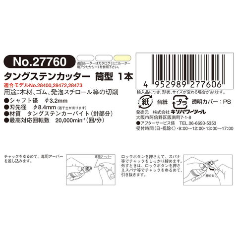 品名 プロクソン タングステンカッター 筒型 No.27760