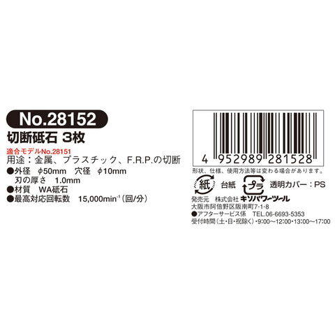 【DIY 工具 ツール プロクソン 切断砥石 No.28152 電動工具 ホビーツール プロクソン製品 4952989281528】