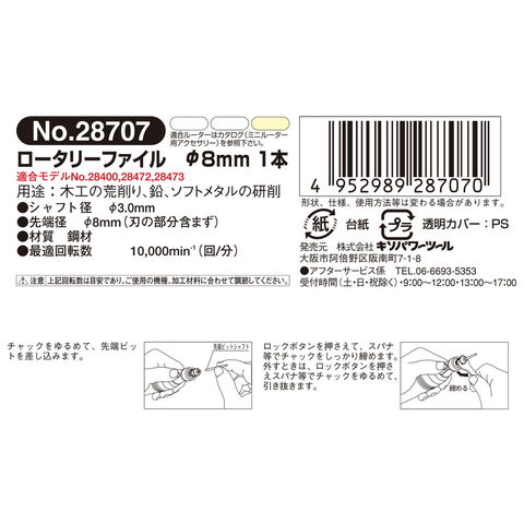 【DIY 工具 ツール プロクソン ロータリーファイル 8mm No.28707 電動工具 ホビーツール プロクソン製品 4952989287070】