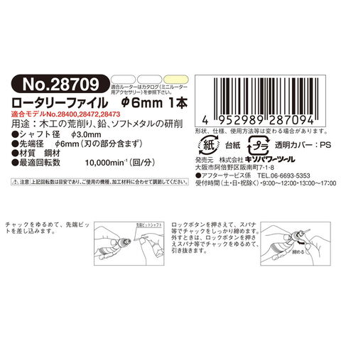 品名 プロクソン ロータリーファイル 6mm No.28709