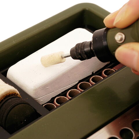 ・磨き、研磨の中仕上、つや出し用、純毛バフにつけて使用します。