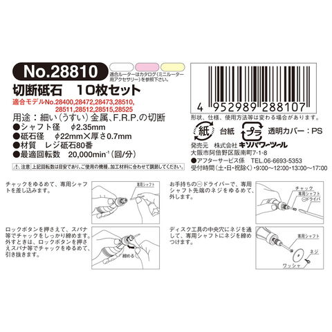 セット内容:切断砥石×10・シャフト×1。