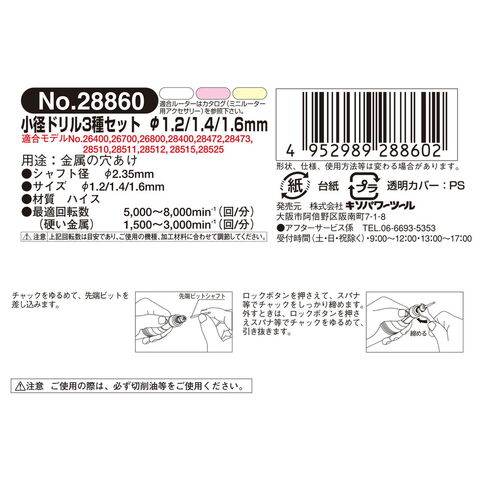 セット内容:小径ドリル3種。