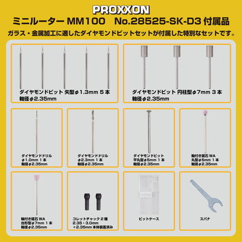 プロクソン ミニルーターMM100ダイヤ No.28525-SK-D3 【FJtools プロクソン ミニルーターMM100ダイヤ No.28525-SK-D3 電動工具 ホビーツール 販売確認品・ホビーツール 4952989787150 】【おしゃれ おすすめ】