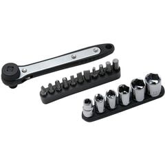 セット内容:スリムラチェットドライバー・16mm片頭ビット+No.2・19片頭mmビット+No.1・+No.2・-6mm・6.35sq.ソケット5.5mm・7mm・8mm・10mm・12mm・13mm・6.35sq.ソケット用アダプタービット。